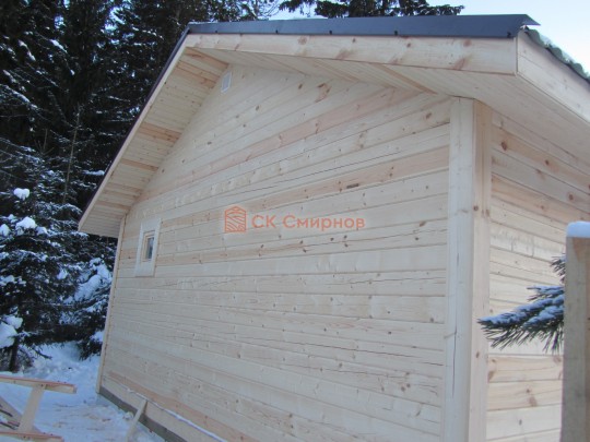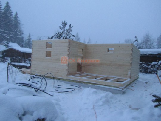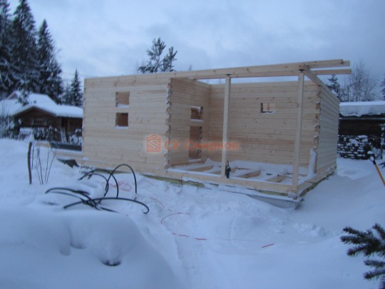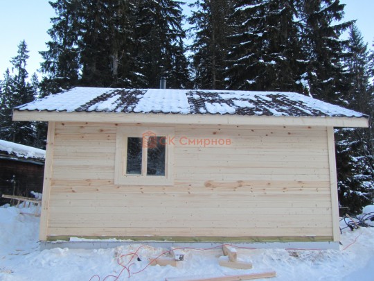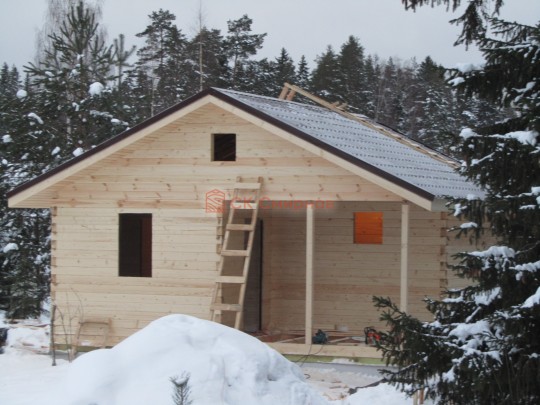 Такая одноэтажная баня 6х6 может быть построена из бруса. Ориентировочный срок строительства 21 дней.