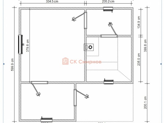 Для строительства аккуратной бани 6х6 метров СК Смирнов разработал проект №119 с обустроенной парной и комнатой отдыха. По планировке общая площадь составляет 36 квадратных метров. Можно выделить несколько особенностей проекта: терраса, санузел. Мы строим бани под ключ с полной отделкой снаружи и внутри.