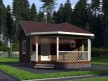 В том случае, если на дорогие изыски средств не хватает, то идеальным решением станет предлагаемый нами проект угловой бани из бруса 6х5 с трапециевидной террасой. Стены парной возводятся с применением профилированного бруса толщиной 9х14 или 14х14 см, сборка производится на нагеля из металла.