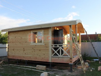Такая одноэтажная баня 4х4 может быть построена из бруса. Ориентировочный срок строительства 12 дней.