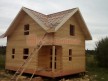 На фото представлен проект недорогого дома №203 габаритами 6х8 метров и отличной планировкой общей площадью 96 квадратных метров. Сруб полутораэтажный, может использоваться как зимний, для постоянного проживания.