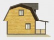 На фото представлен проект деревянного дома №252 габаритами 7х8 метров и отличной планировкой общей площадью 87 квадратных метров. Можно выделить несколько особенностей проекта: терраса, веранда, туалет, ванная, санузел. Дом с мансардой, может использоваться как зимний, для постоянного проживания.