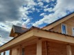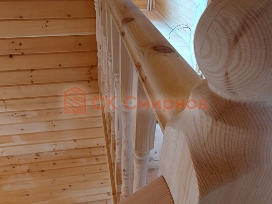 На террасе при условии что она есть делаем перила из строганной доски со всех сторон, столбы террасные также строганные, а не обрезки профилированного бруса с шипом и пазом. Домкратики на столбах для дальнейшей регулировки. Балясины будут сделаны аккуратно. Обратите внимание что в дешёвых случаях это может быть и будет просто вагонка прибирая к неотесанной доске снаружи и столбы будут не квадратные а просто профилированный брус как на видео.
