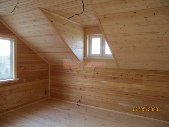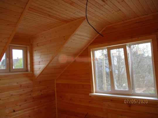 Потолки, стены вансардного каркасного этажа ( если он есть ) обшиваются сухой вагонкой.
