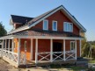 На фото представлен проект двухэтажного дома 10х11 метров для постоянного проживания и отличной планировкой общей площадью 176 квадратных метров. Можно выделить несколько особенностей проекта: терраса, веранда, туалет, ванная, санузел. Коттедж построен из клееного бруса кедра — это лучший материал для строительства современного деревянного коттеджа под ключ.