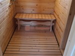 По умолчанию в помывочную бани ставится металлический поддон (как в душе). Честно говоря, это не самое удобное решение, да и не самое симпатичное. Поэтому всем клиентам рекомендуем вместо этого заказать установку пластикового поддона во всю площадь помывочной. Сверху кладутся трапики.