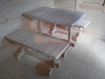 Для бани дополнительно можно заказать комплект добротной и красивой мебели — стол и 2 скамеечки. Мебель изготавливается на нашем производстве — она крепкая, не шатается (в отличие от фабричной, которую мы заказывали раньше). По договорённости можно сделать индивидуальный размер.